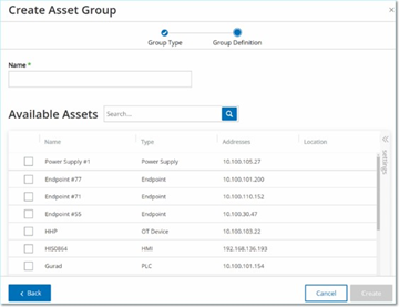 Assets sind Hardwareentitäten im Netzwerk. Durch Gruppieren ähnlicher Assets können Sie Richtlinien erstellen, die für alle Assets in der Gruppe gelten. Beispielsweise könnten Sie eine Asset-Gruppe „Controller“ verwenden, um eine Richtlinie zu erstellen, die bei Firmware-Änderungen an einem Controller warnt. Asset-Gruppen werden als Richtlinienbedingung für eine Vielzahl von Richtlinientypen verwendet. Asset-Gruppen können verwendet werden, um das Quell-Asset, das Ziel-Asset oder das betroffene Asset für verschiedene Richtlinientypen anzugeben.