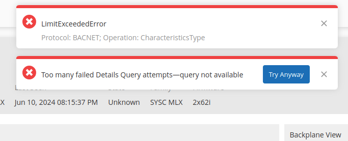 Hinweis: Sie können die Option Trotzdem versuchen verwenden, um mit aktiven Abfragen für Geräten oder Netzwerke fortzufahren, und so das Limit für die Anzahl der aktiven Abfrageversuche überschreiben.