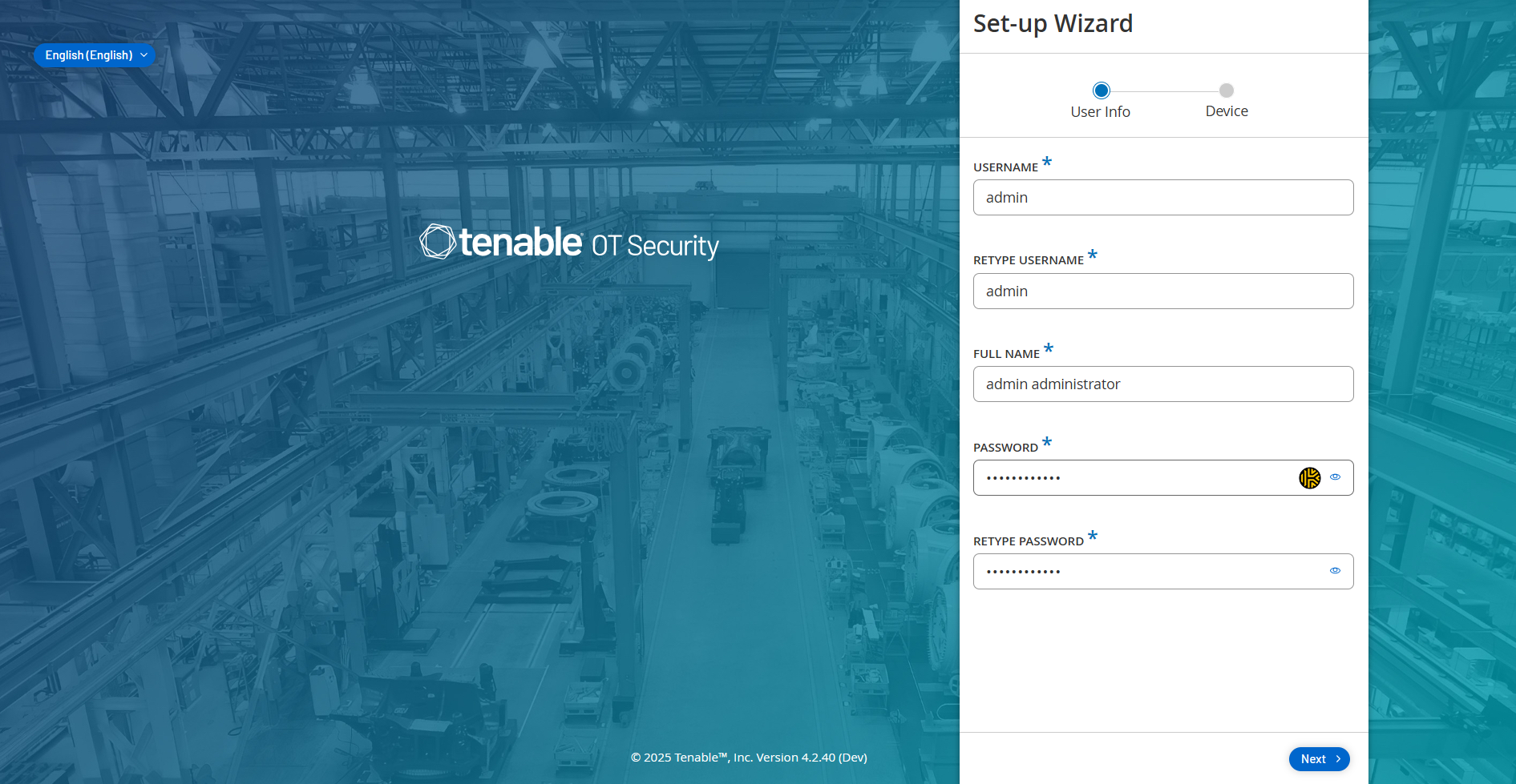 Der Setup-Assistent von OT Security führt Sie durch die Konfiguration der grundlegenden Systemeinstellungen.