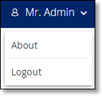 Zeigt den Namen des Benutzers an, der derzeit beim System eingeloggt ist. Klicken Sie auf den Abwärtspfeil, um die Menüoptionen anzuzeigen: Info (zeigt Informationen zur Software an) und Ausloggen.