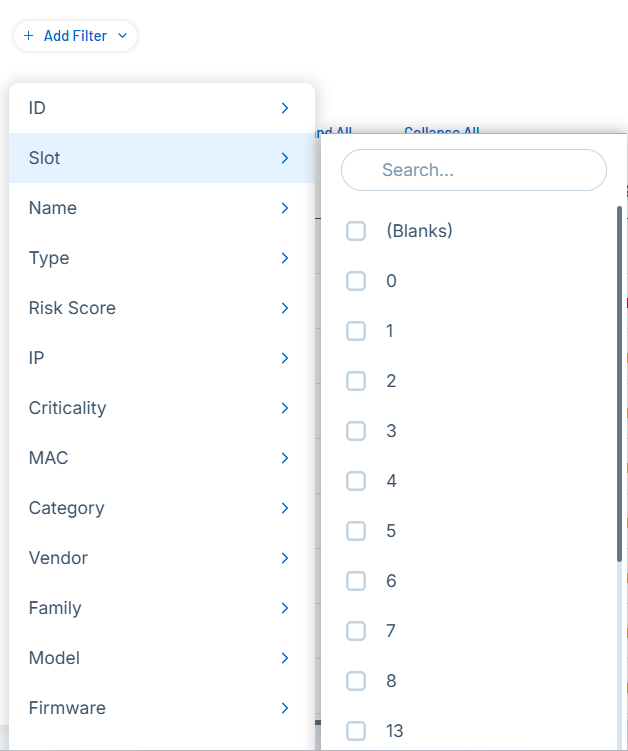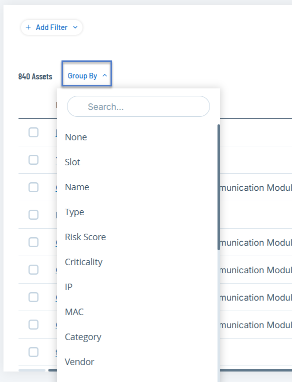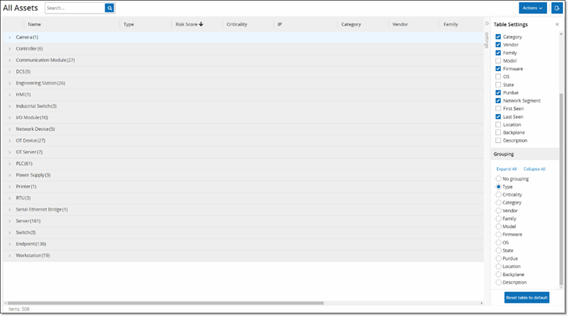 Tipp: Verwenden Sie das Suchfeld, um nach einem bestimmten Parameter zu suchen.OT Security gruppiert die Liste nach dem ausgewählten Parameter.
