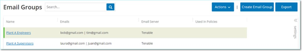 OT Security erstellt die neue E-Mail-Gruppe und zeigt sie auf der Seite E-Mail-Gruppen an. Sie können diese Gruppe jetzt beim Konfigurieren von Richtlinien verwenden.