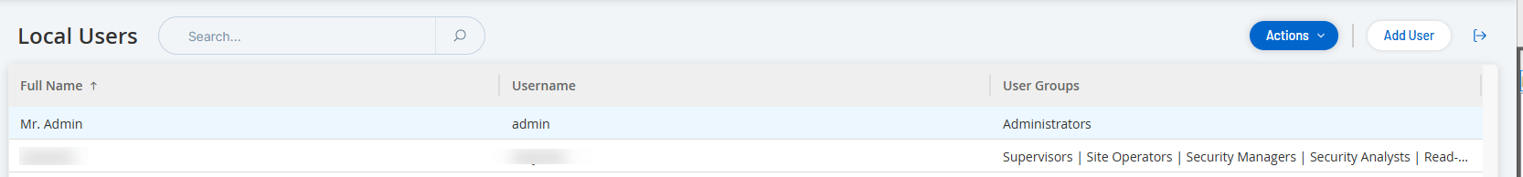 OT Security erstellt das neue Benutzerkonto im System erstellt und fügt es der Liste der Benutzer unter Lokale Benutzer hinzu.
