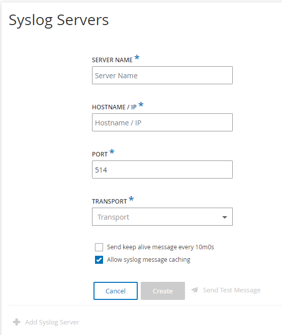 2. Klicken Sie auf + Syslog-Server hinzufügen. Das Konfigurationsfenster Syslog-Server wird angezeigt.